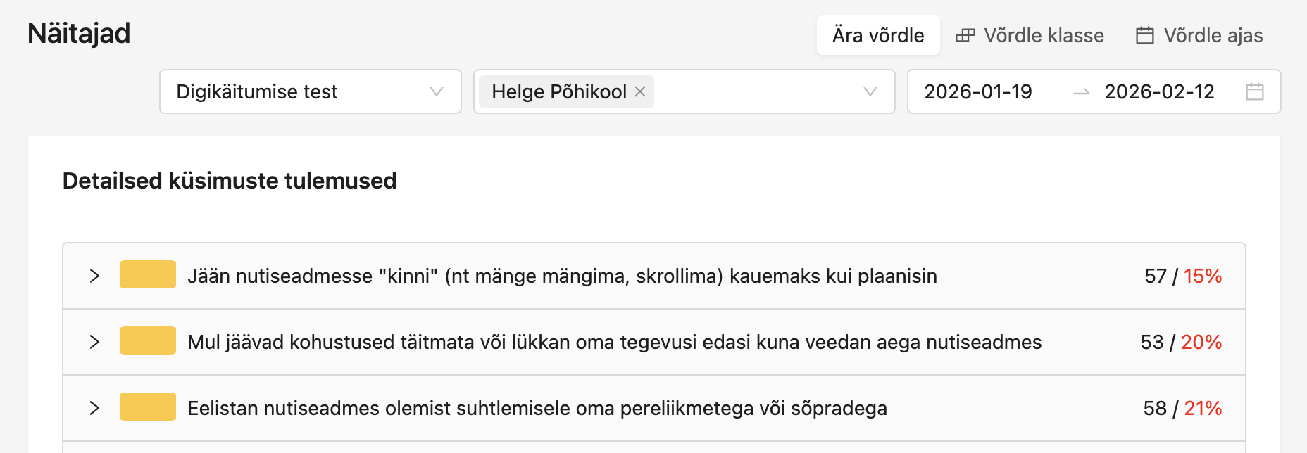 2. Aegread: Regulaarne hindamine (nt kord poolaastas) võimaldab jälgida käitumismustrite muutust ajas – näiteks eksamiperioodide või koolivaheaegade mõju digiharjumustele.