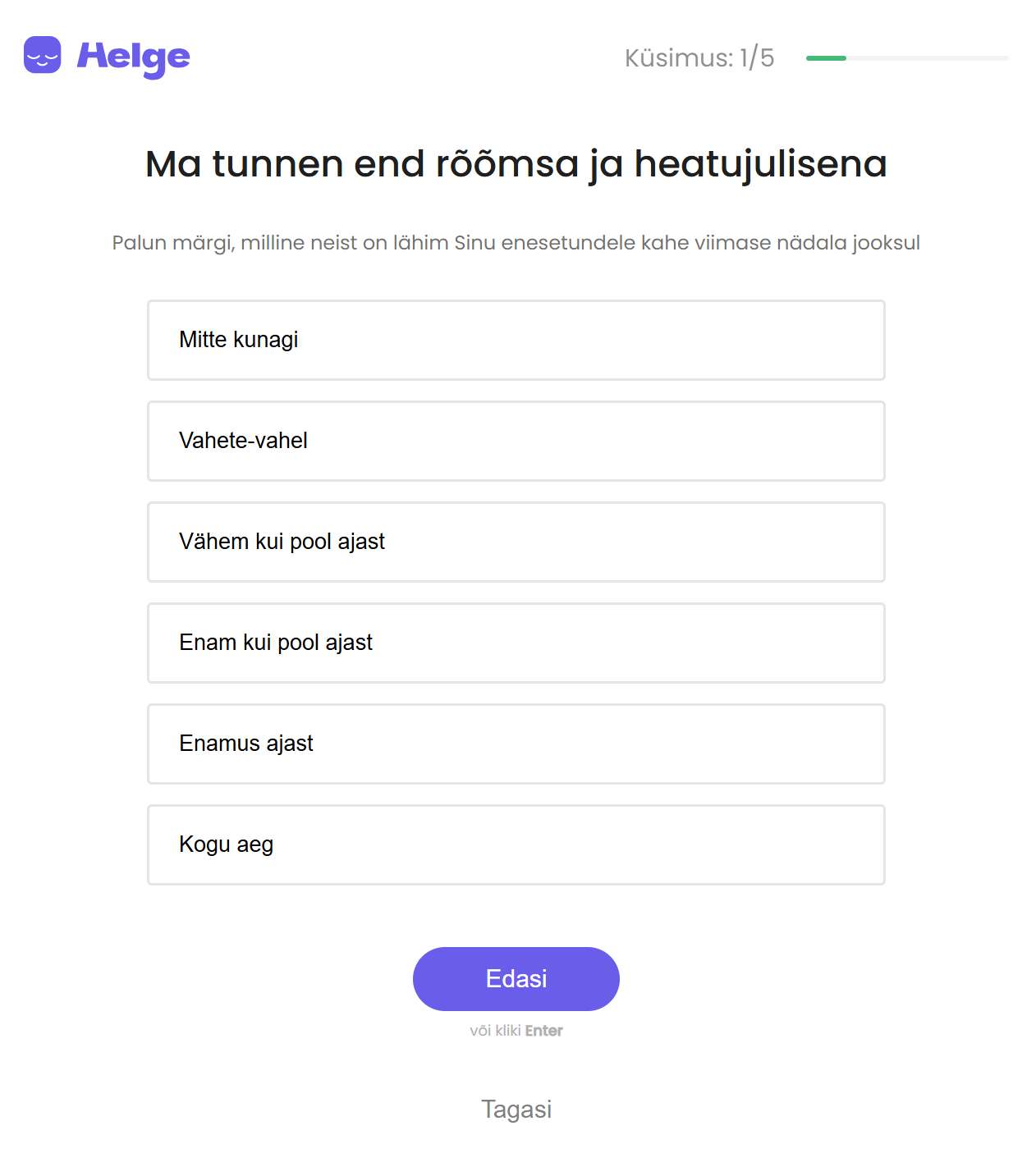 - Lihtne ja kiire: 2 minutit, 5 küsimust. Tulemus kohe käes.